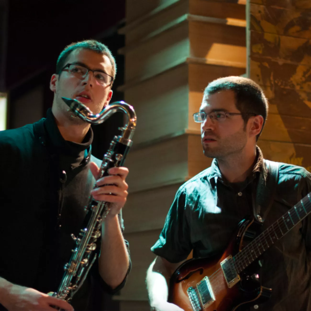 Un duo atypique composé de Julien Delbrouck à la clarinette basse et Gonzalo Rodriguez à la guitare électrique.
